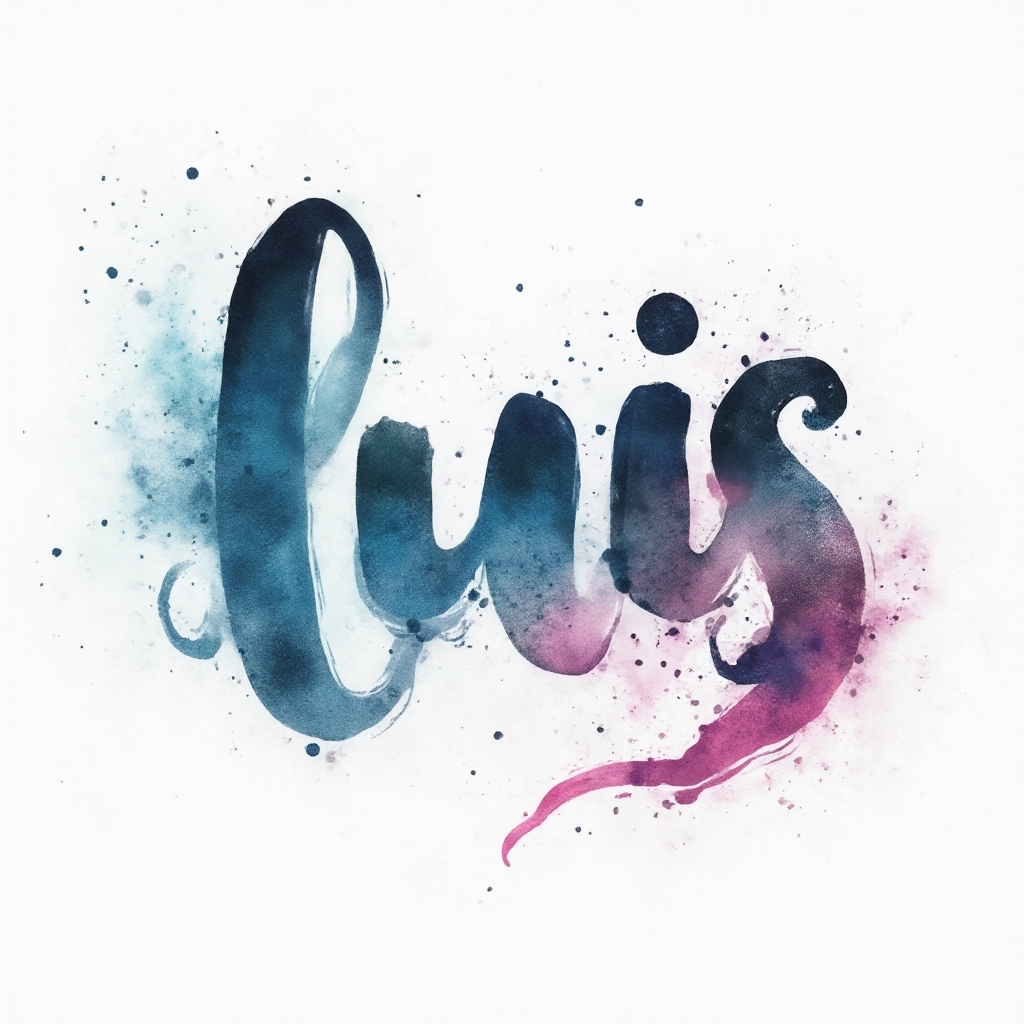 Flowing watercolor script where “luis” appears as if painted in translucent inks with soft splashes and gradients.