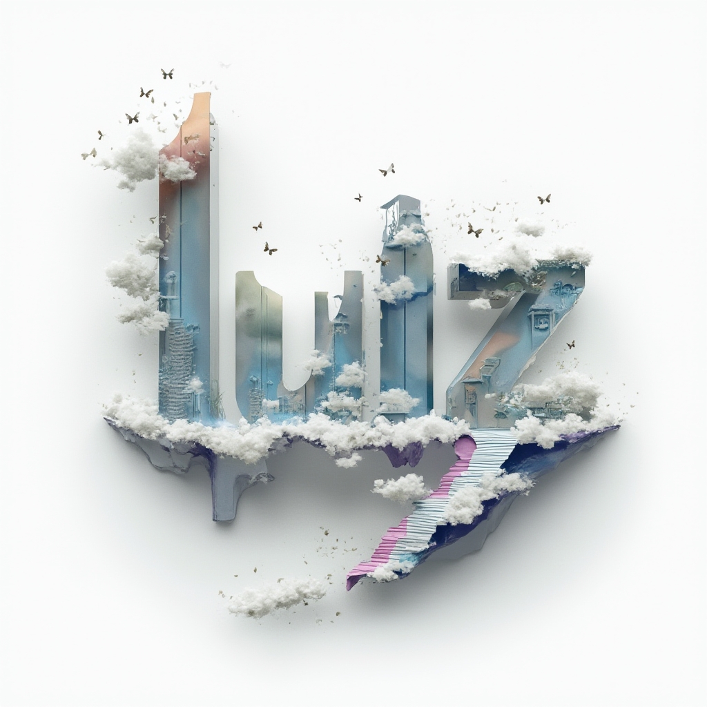 The name "luiz" reimagined as surreal, impossible structures and dreamlike shapes, all forming stylized letters on a white background.