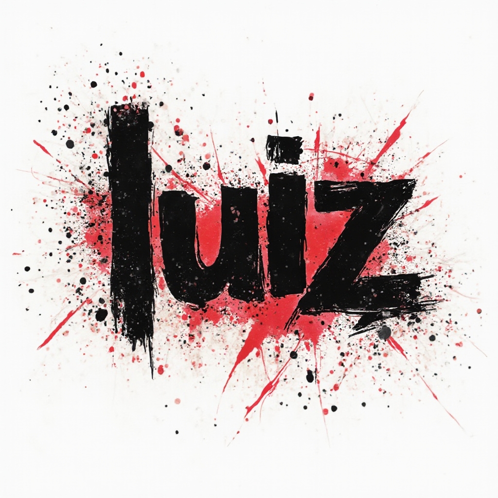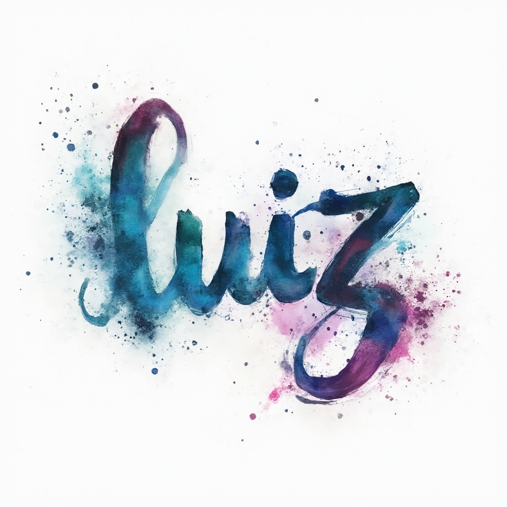 The name "luiz" transformed into fluid watercolor-style lettering with bright splashes and drips on a clean white background.