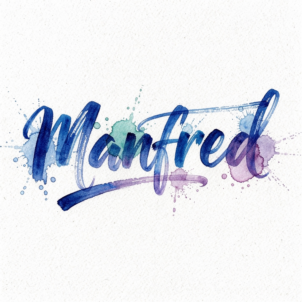 A flowing watercolor tattoo concept where the name Manfred is fully shaped by painterly color washes and soft gradients.