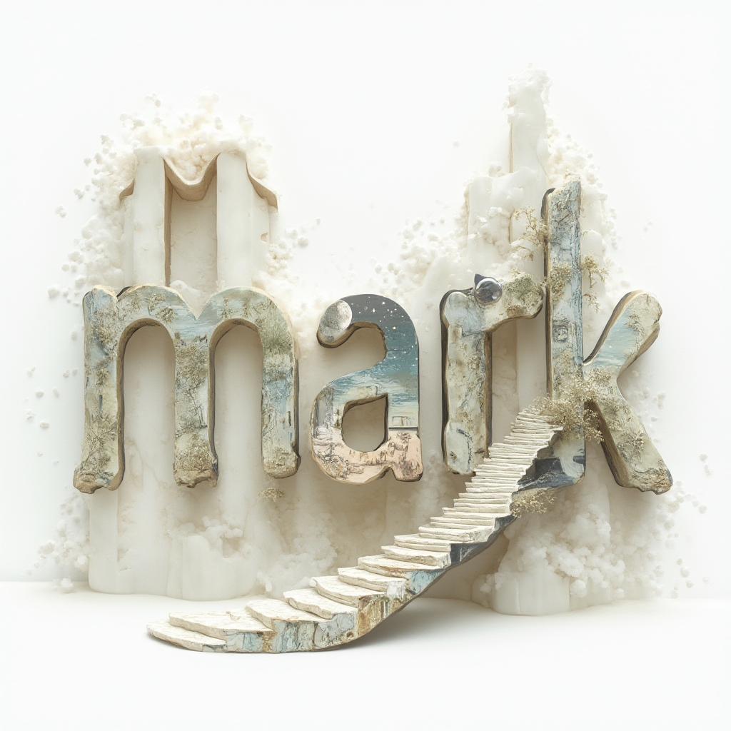 A surreal dreamscape where 'mark' is constructed from impossible arches, melting forms, and floating structures.