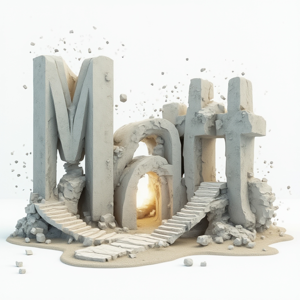 A surreal dreamscape where twisting architecture and floating fragments assemble into the letters of “matt.”