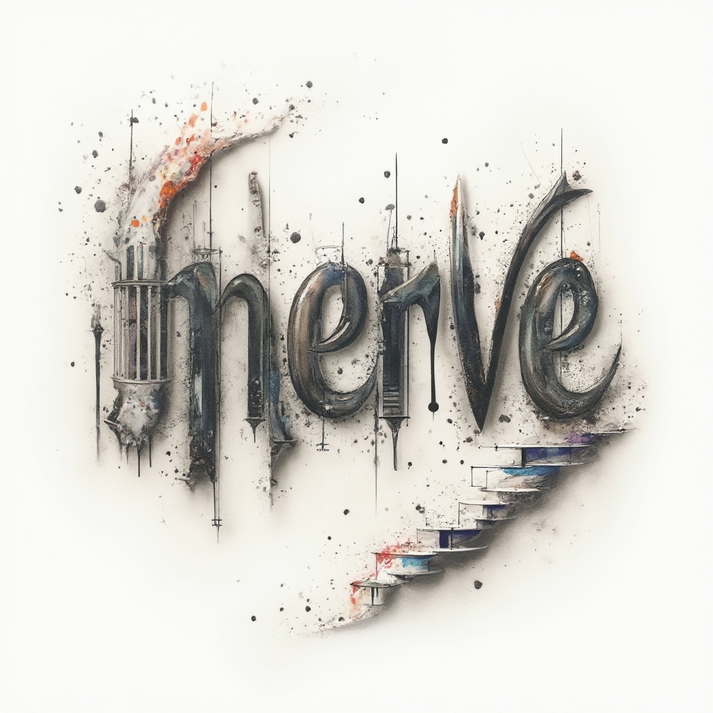 A dreamlike surreal composition turning ‘merve’ into impossible, gravity-defying structures.