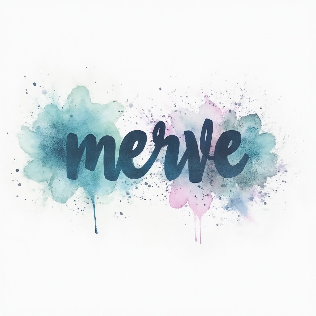 A soft, flowing watercolor interpretation of ‘merve’ built from vivid brushstrokes and color washes.