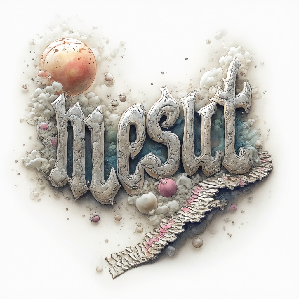 “mesut” transformed into a surreal dreamscape of warped letters, floating forms, and impossible structures.