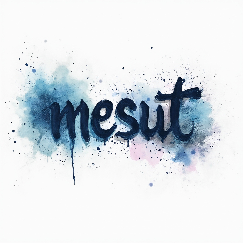 “mesut” painted as fluid watercolor lettering with splashes, drips, and soft gradients on white.