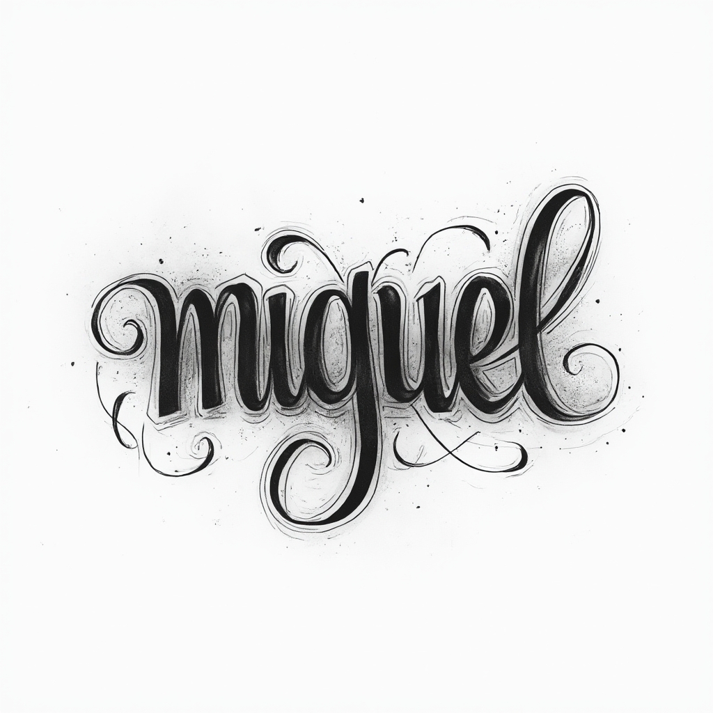 Tattoo design prompts integrating the name 'miguel' in multiple art styles