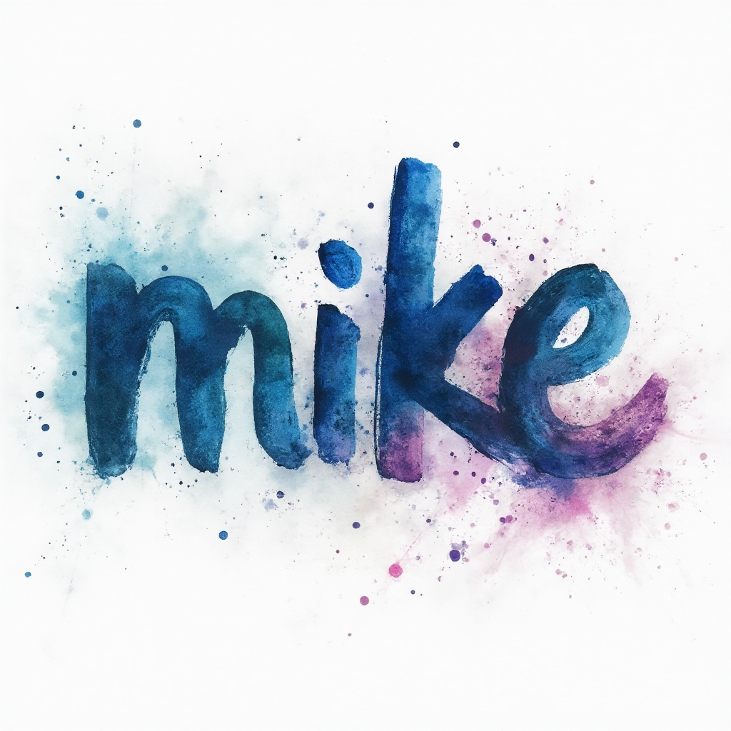 A dreamy watercolor tattoo design where "mike" is painted in flowing, blended colors with splashes and soft gradients.