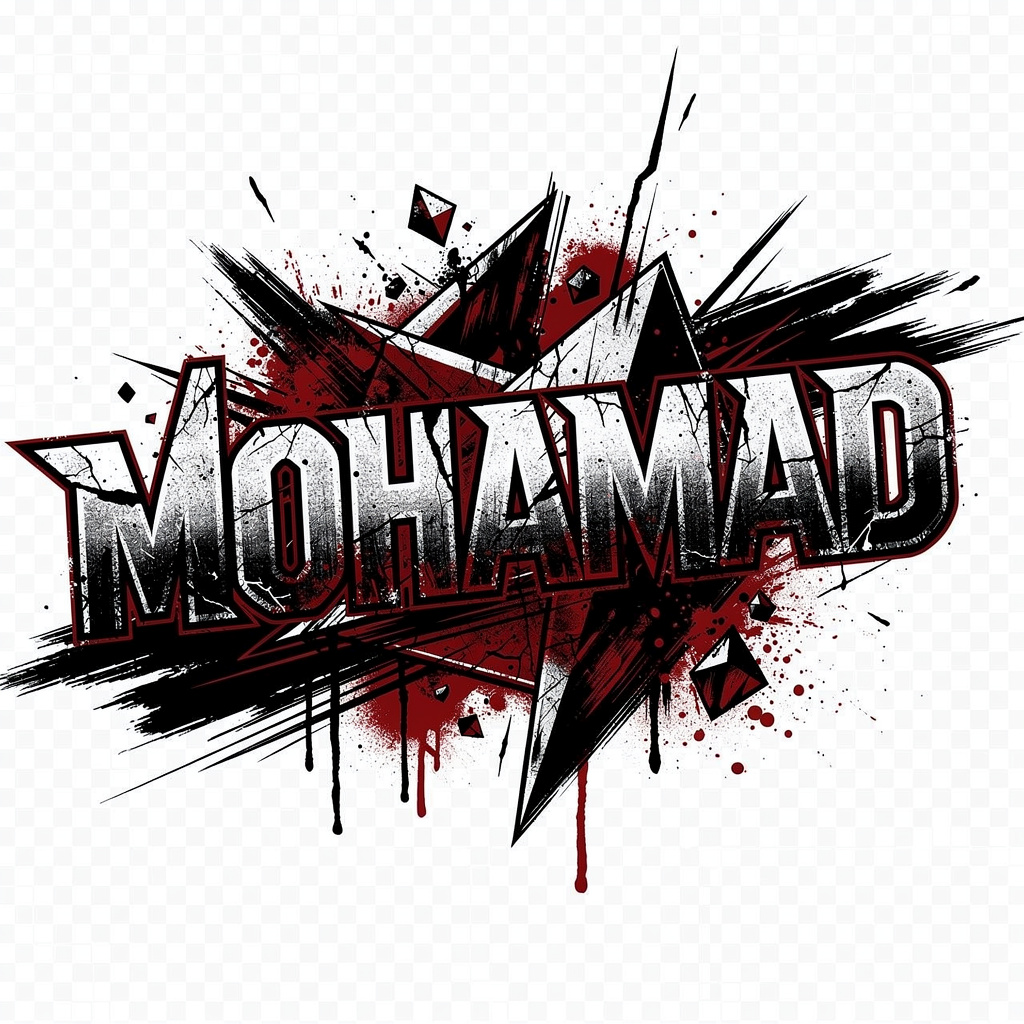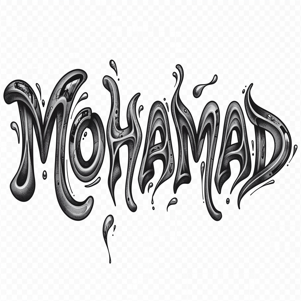 A surreal tattoo-style design where the name Mohammad appears as fluid, distorted lettering in an imaginative, dreamlike layout.