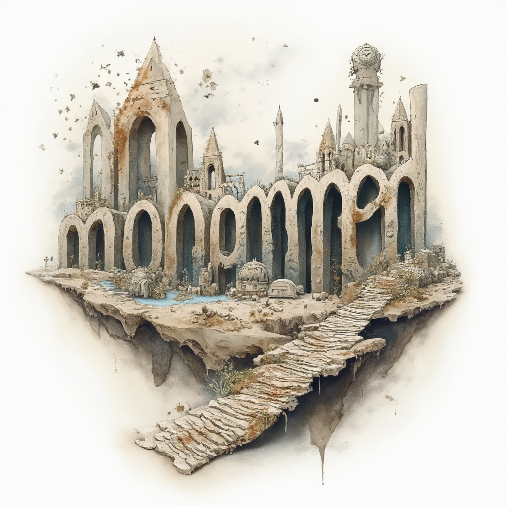 A surreal dreamscape where the letters of 'mohammed' morph into impossible architecture and floating shapes.