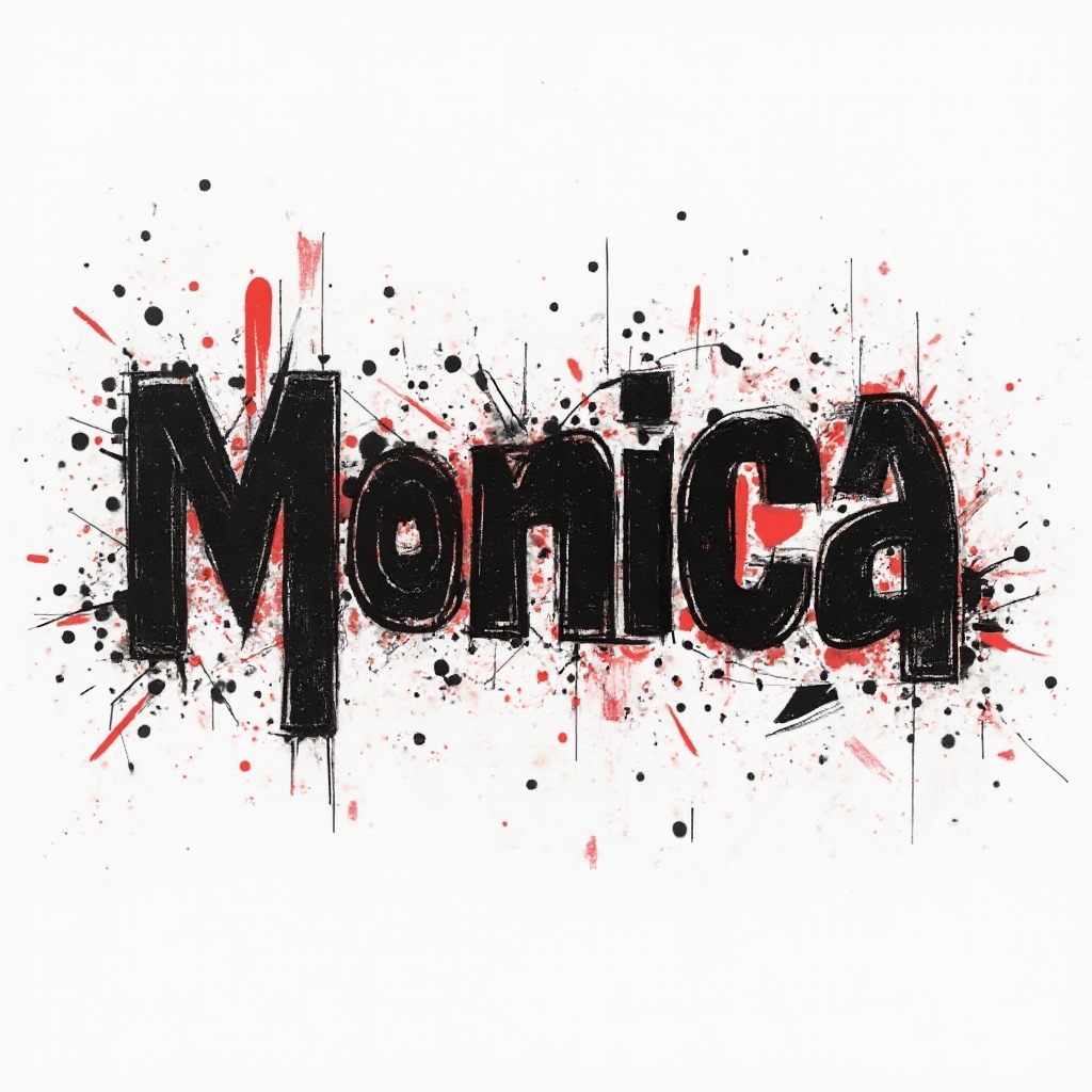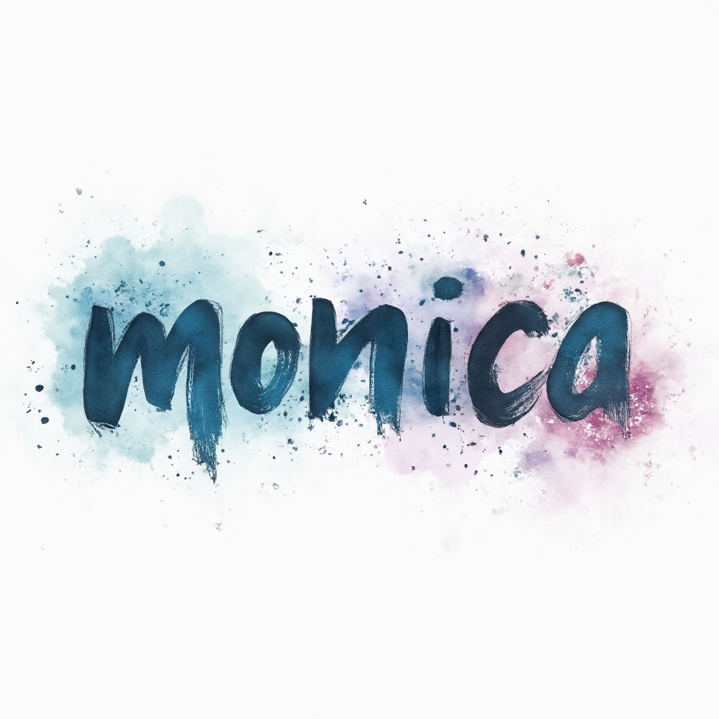A soft watercolor-inspired design where Monica’s name becomes fluid, colorful brushstroke lettering with delicate splashes.
