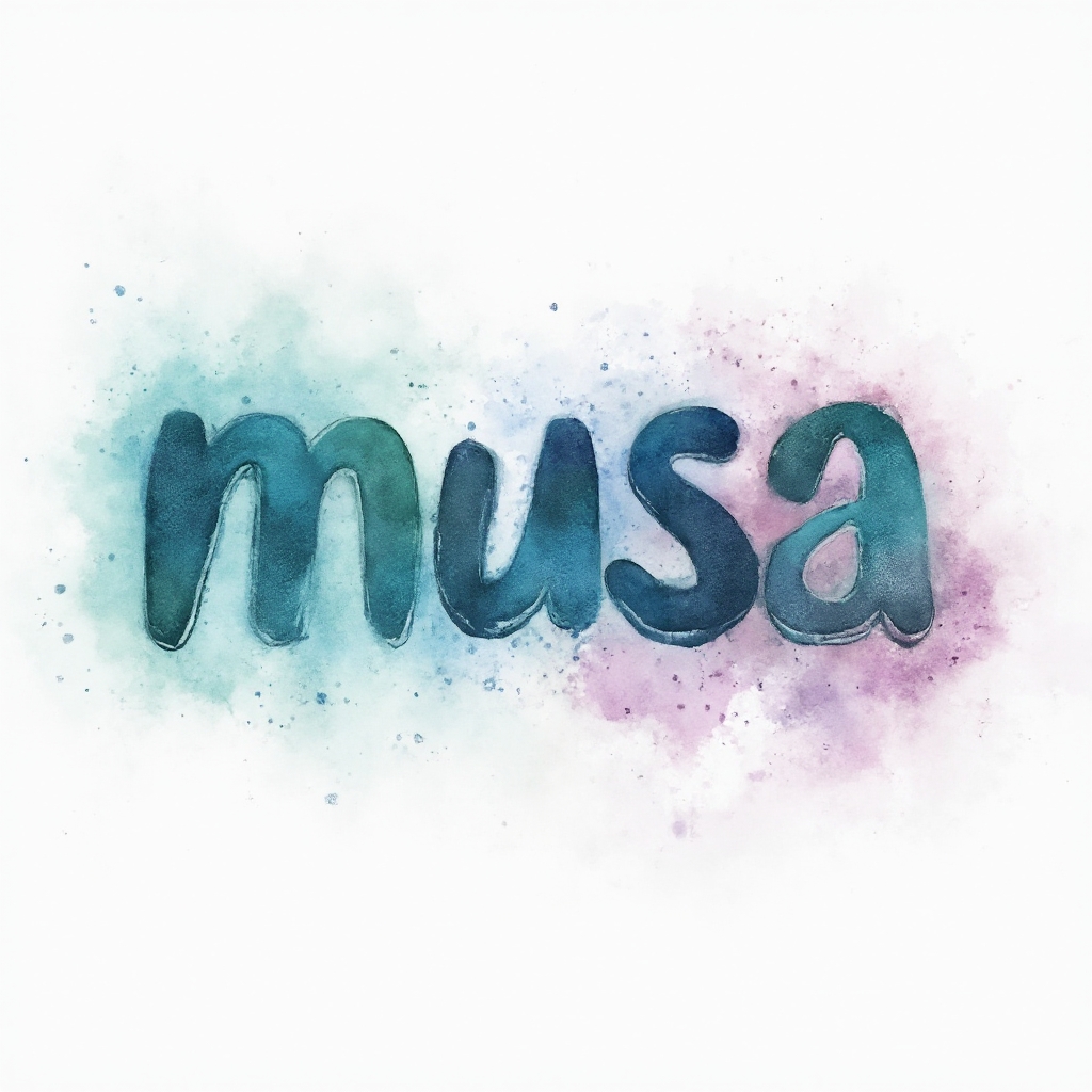 A dreamy watercolor concept where musa appears as fluid, hand-painted lettering wrapped in aurora-like color blooms.