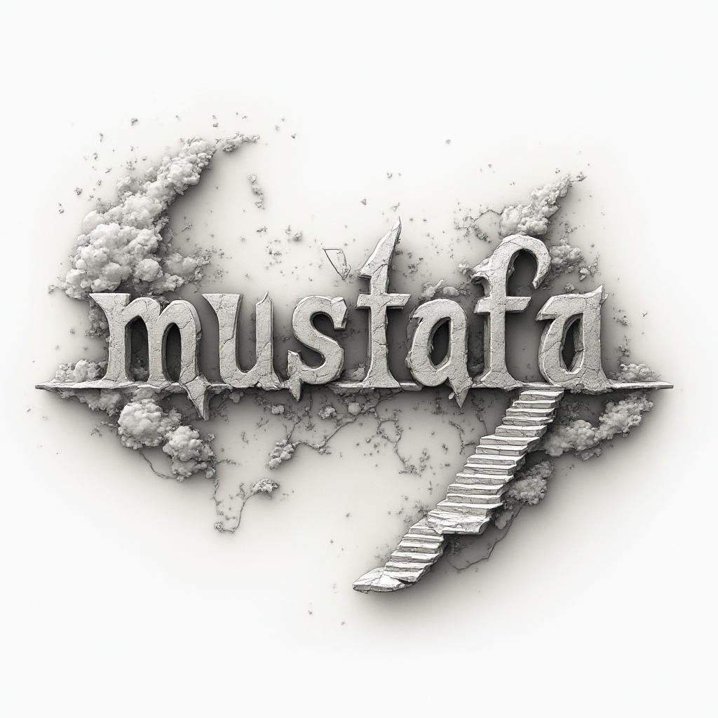 A dreamlike surreal composition where “mustafa” appears as impossible, floating structures.