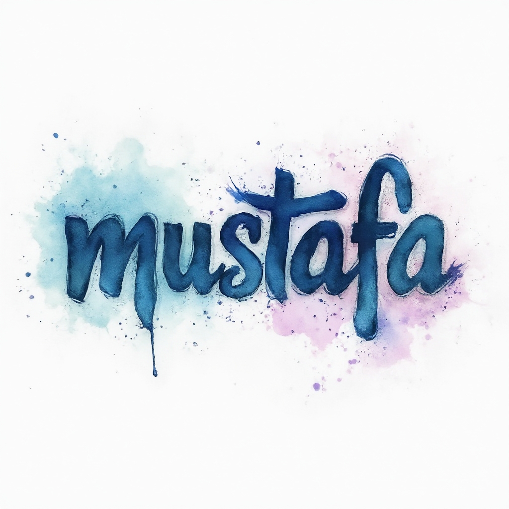 Ethereal watercolor lettering where “mustafa” emerges from flowing, colorful brushstrokes.