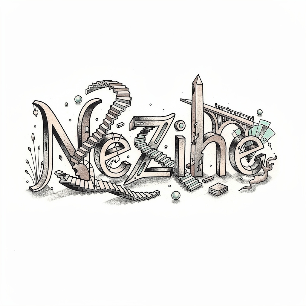 A surrealist tattoo concept where the letters of Nezihe transform into imaginative, dreamlike forms.