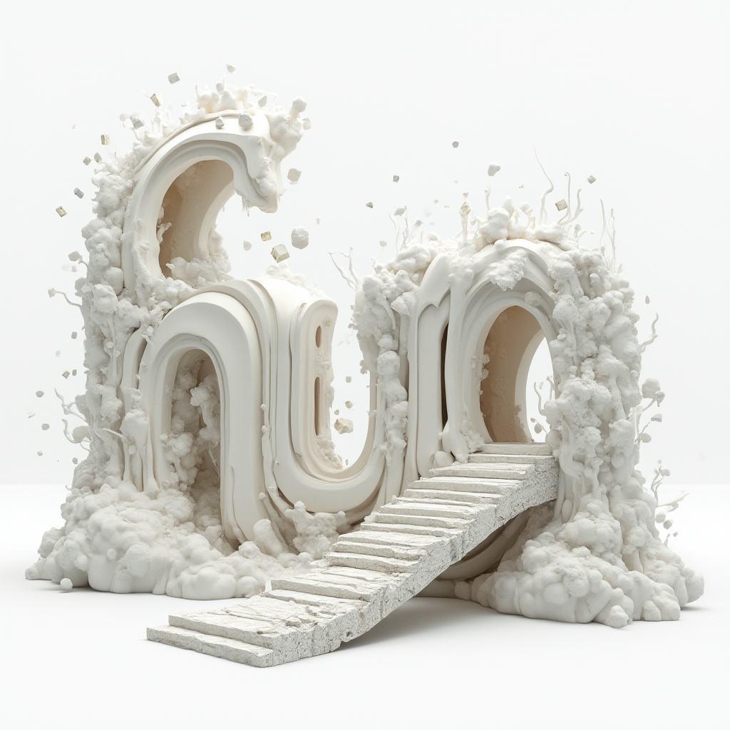 A surreal tattoo idea where ‘nur’ becomes an impossible dreamscape of melting, floating, and twisting architectural letters.