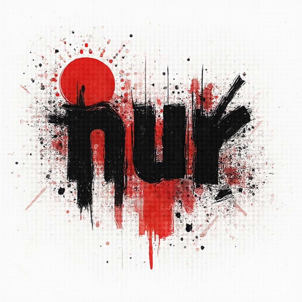 A bright watercolor tattoo concept where ‘nur’ is painted as fluid brushstroke lettering surrounded by colorful splashes and gradients.