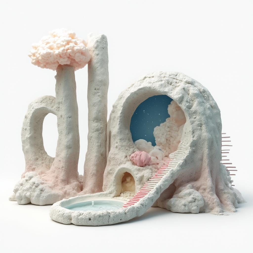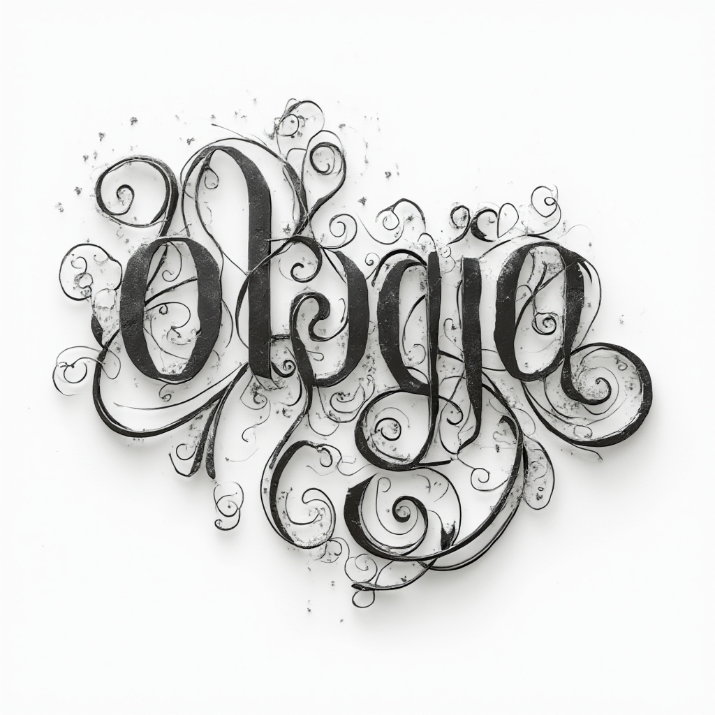 A dreamlike surrealism tattoo concept turning ‘olga’ into impossible structures and floating forms in a white void.