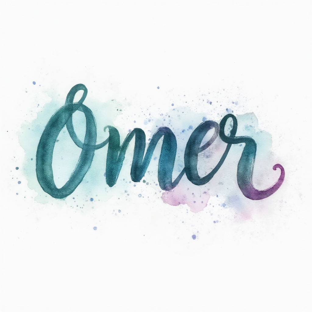 A soft, flowing watercolor design where the name ömer is painted as vibrant, blended brushstroke lettering.