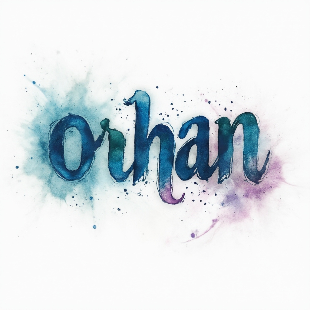 A flowing watercolor interpretation of "orhan" with brushstroke-style letters, soft gradients, and splashes on a white background.