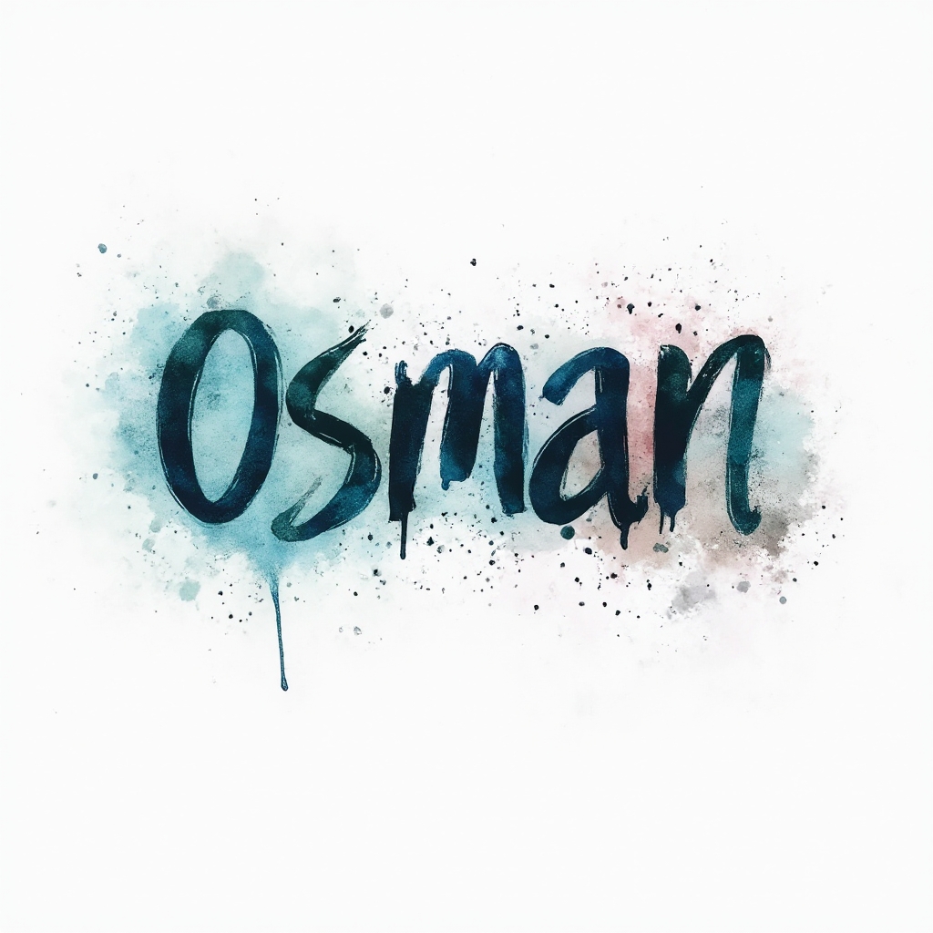 A soft, colorful watercolor interpretation of “osman” with flowing brushstroke letters and vibrant paint splashes.
