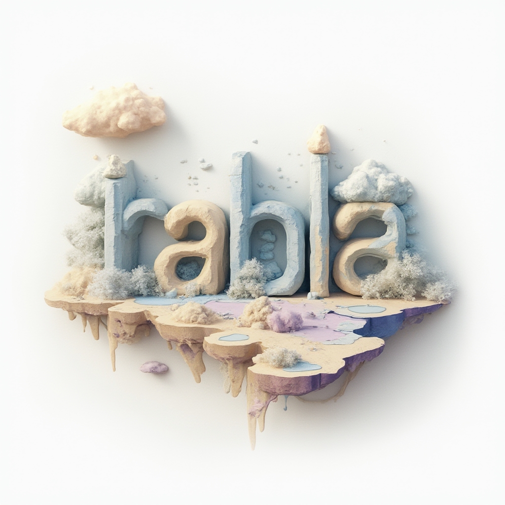 A surreal dreamscape tattoo idea where rabia is shaped from floating, melting letter-forms that blend into clouds and abstract structures.