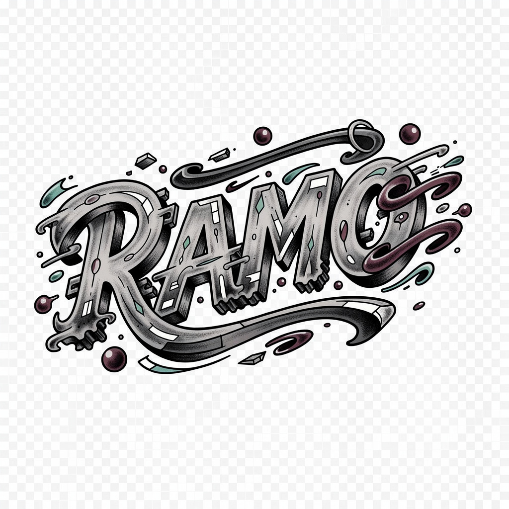 A surrealist tattoo concept where the letters of Ramo twist, melt, and fragment into a dreamlike, impossible structure.
