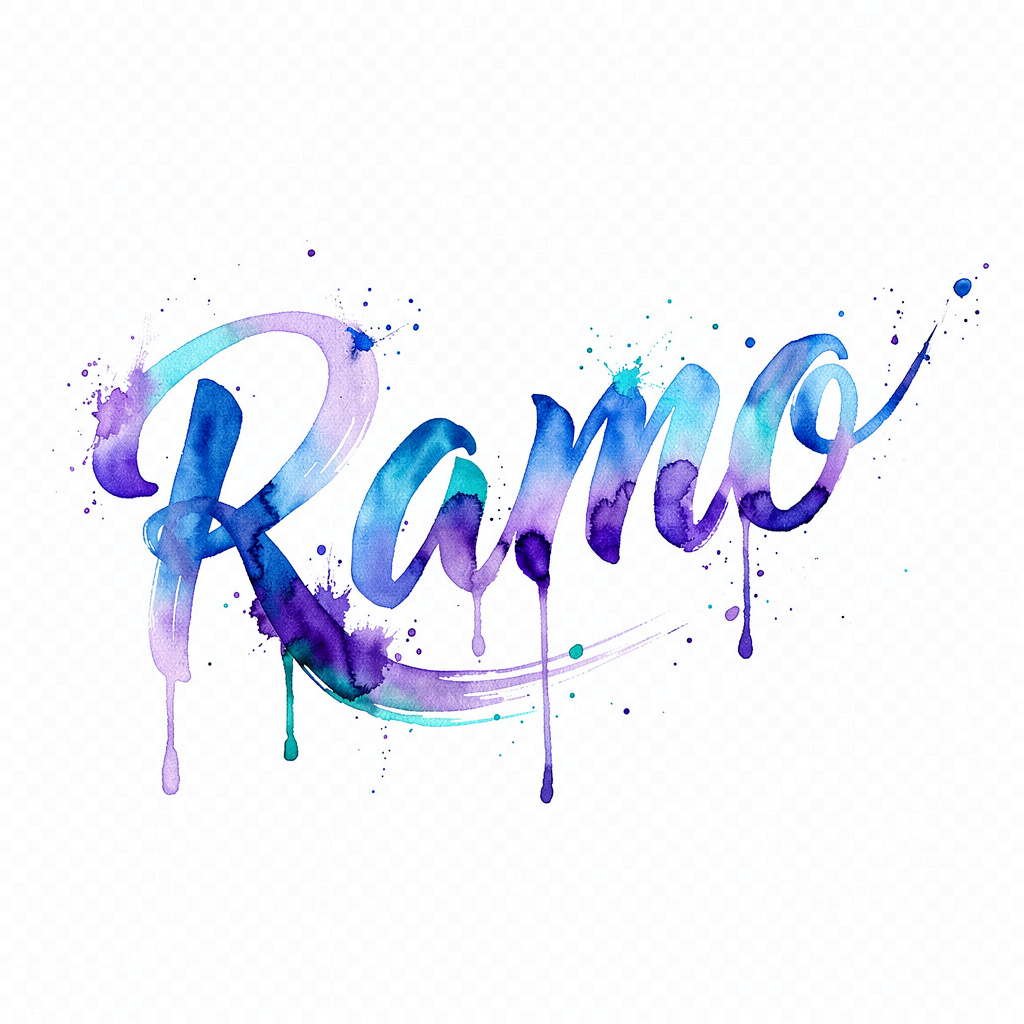 A soft, fluid watercolor-style tattoo design where the name Ramo is painted in blended pigments, creating an artistic, ethereal effect.