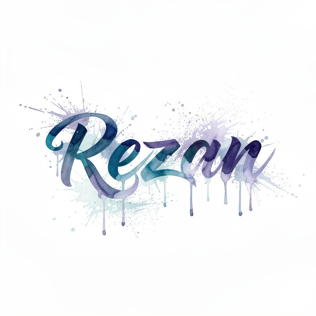 A soft, expressive watercolor tattoo concept where the name Rezan is formed by painterly strokes and splashes, blending typography and art into one fluid design.
