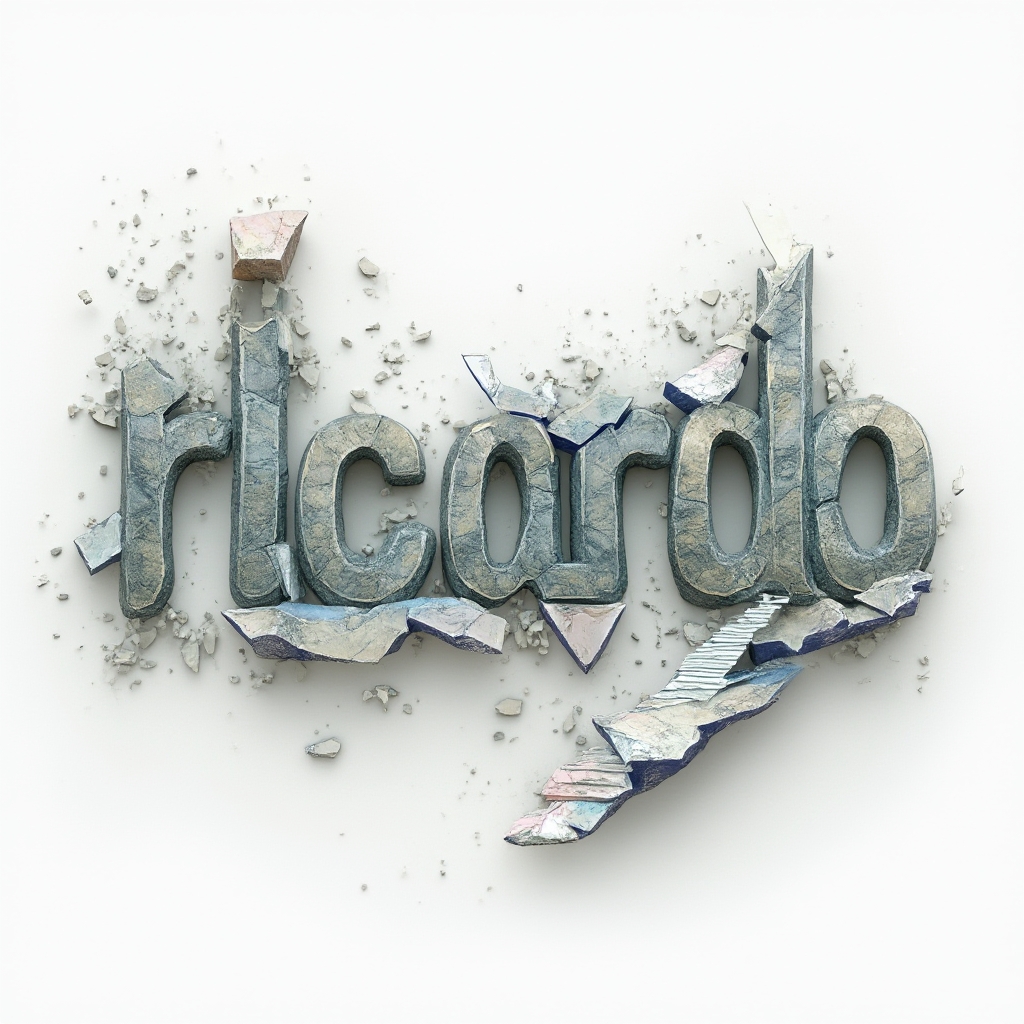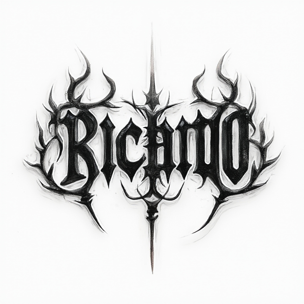 A surrealist tattoo concept where “ricardo” is constructed from impossible architectural letterforms in a dreamlike space.