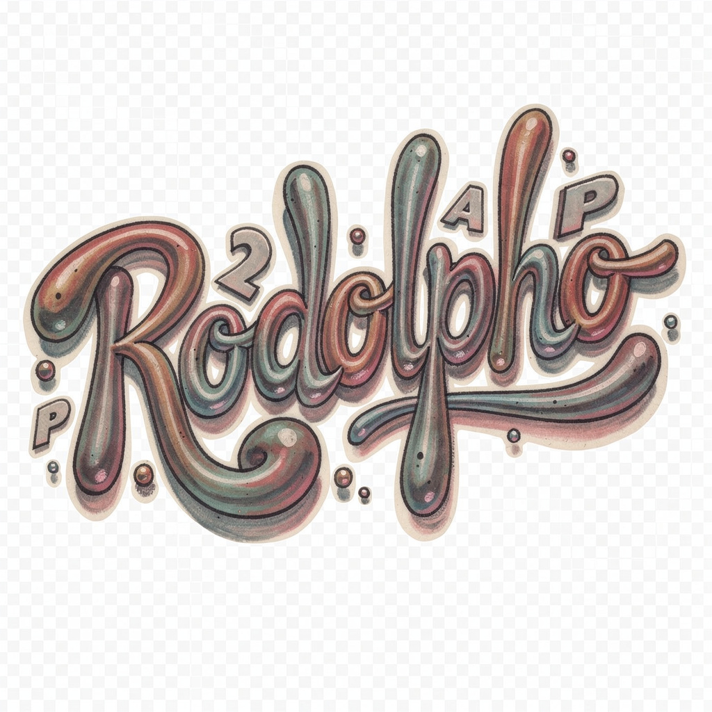 A dreamlike surrealist tattoo design where the letters of Rodolpho twist and melt into an impossible structure.