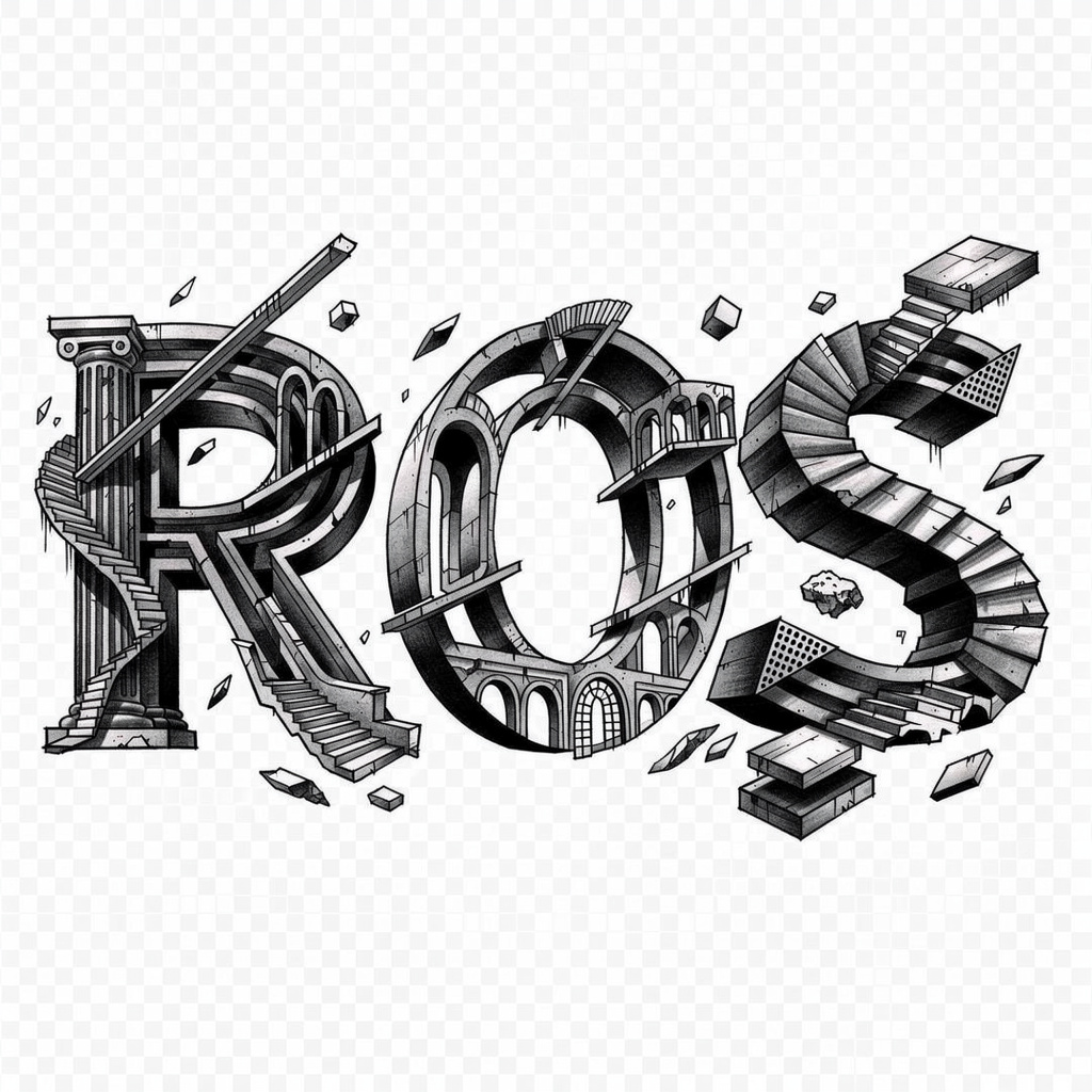A surreal tattoo design in which the letters of Ros twist into impossible, dreamlike shapes while remaining clearly legible.