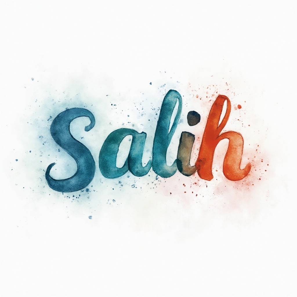 A soft, flowing watercolor interpretation of the name "salih" with dreamy gradients and paint splashes.