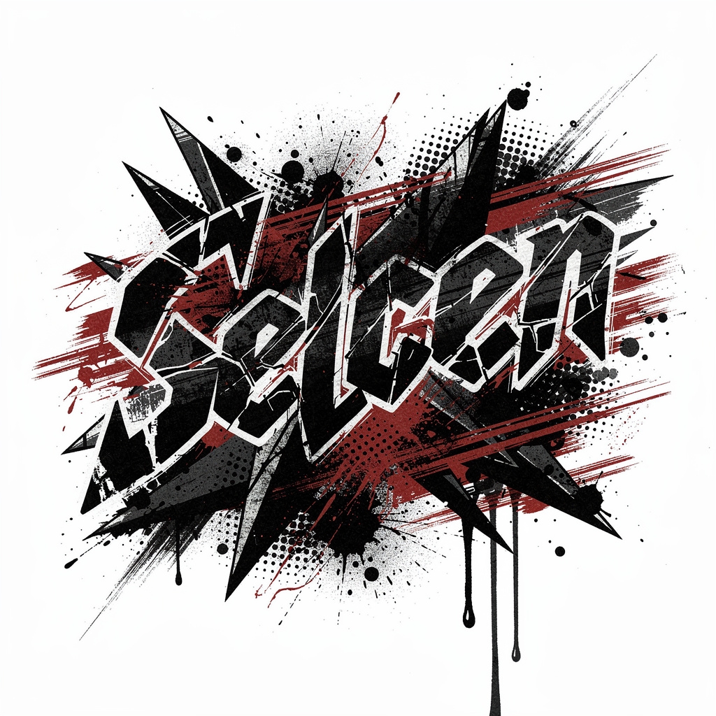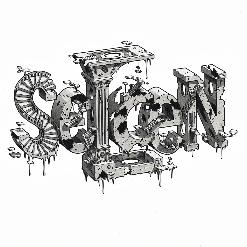 A surreal tattoo design turning the name Selcen into an impossible, dreamlike structure with warped, imaginative letterforms.