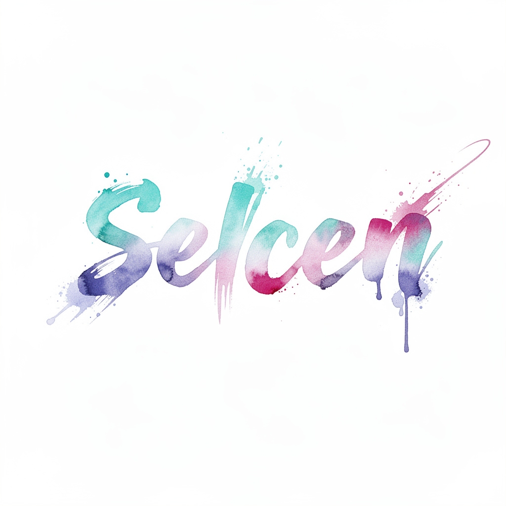 A delicate watercolor tattoo concept where the name Selcen is painted in fluid, colorful strokes that merge seamlessly with abstract splashes.
