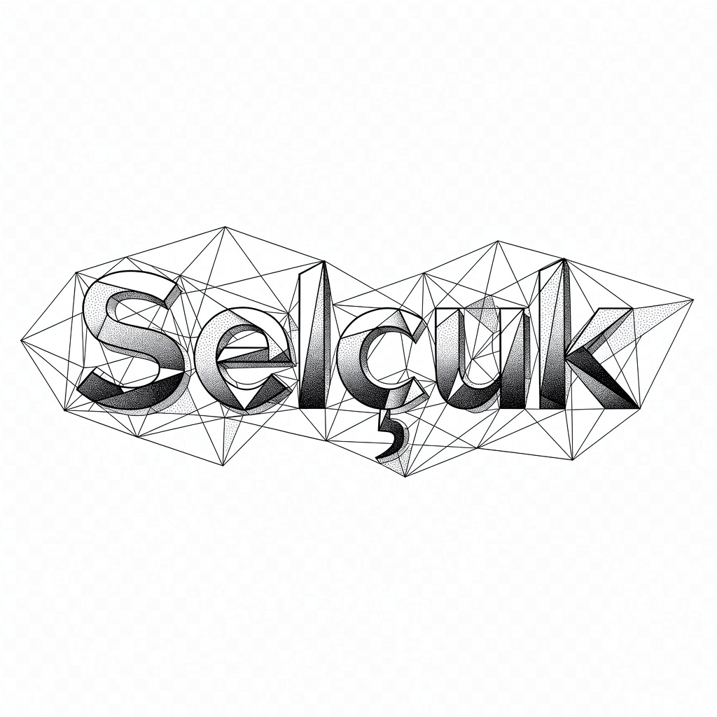 A surreal tattoo rendering of Selçuk, where the letters twist and float in an impossible, dreamlike structure.