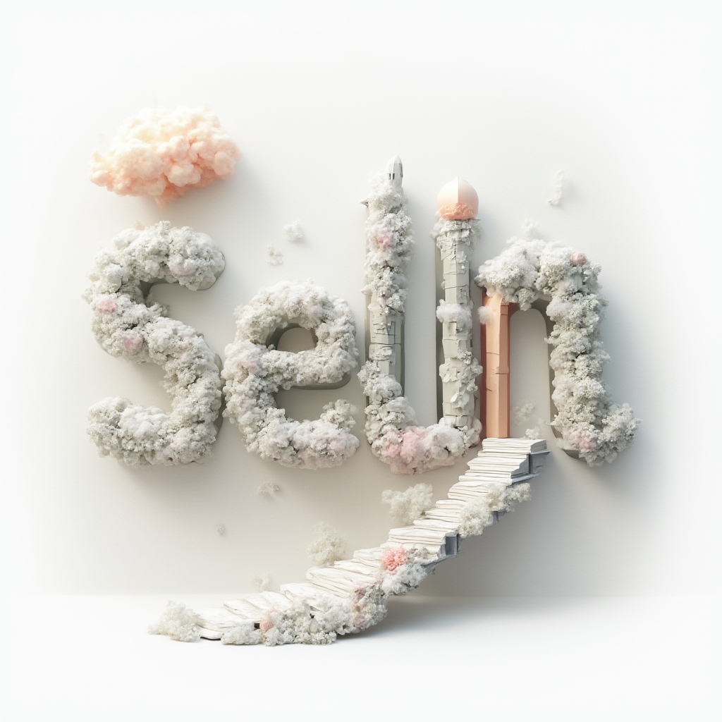 A surreal dreamscape where “selin” melts into impossible architecture, clouds, and geometric illusions.