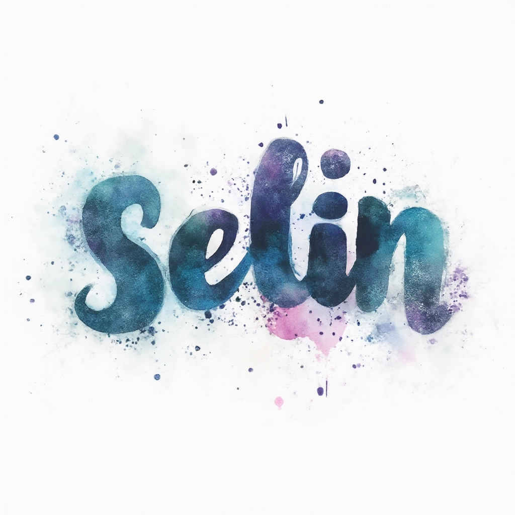 A vibrant watercolor-style interpretation of “selin,” built from fluid, colorful brushstrokes and splashes.