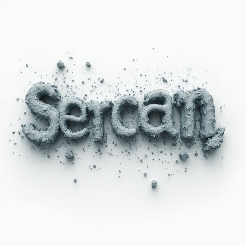 A surreal tattoo design where 'sercan' becomes a set of impossible, dreamlike letter structures that twist, melt, and fragment in a floating, otherworldly composition on white.