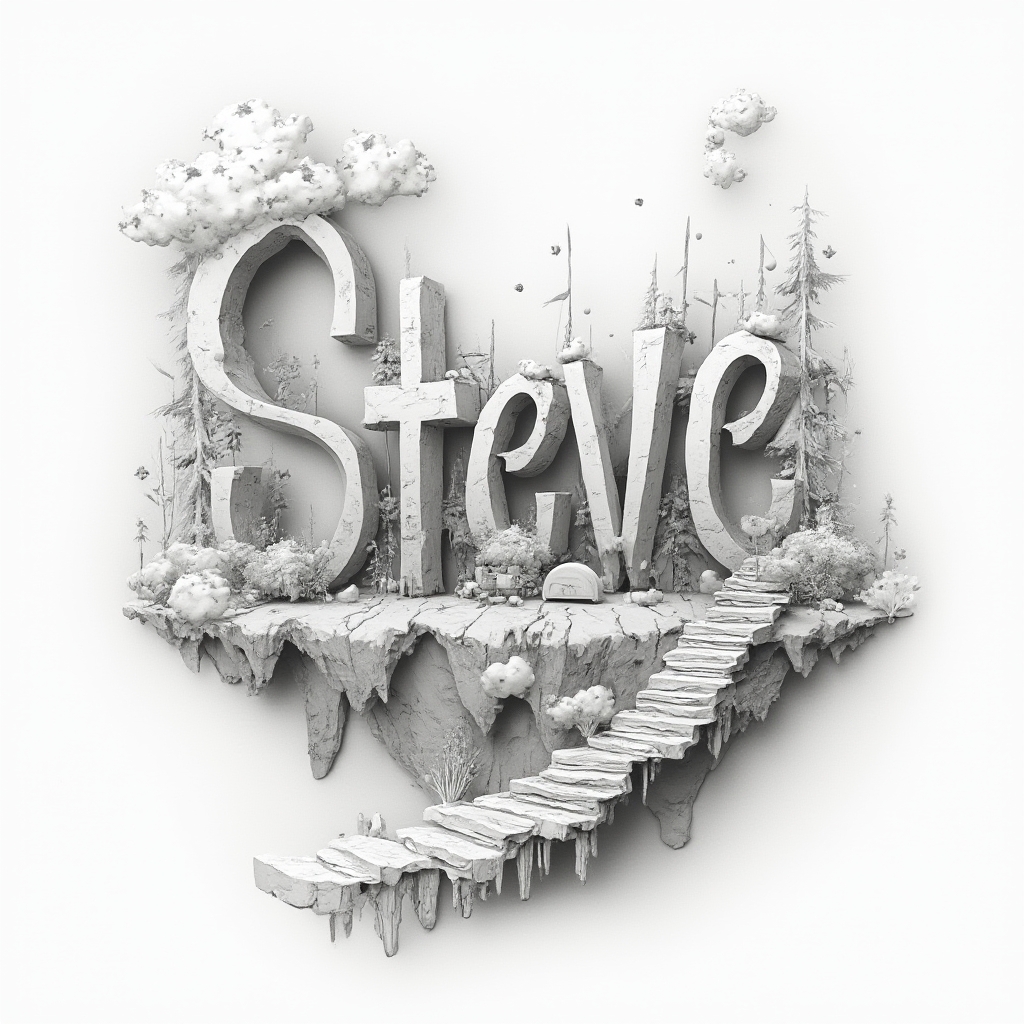 A surreal dreamscape tattoo concept where steve is formed from impossible architecture, floating forms, and dreamlike shadows on a white background.