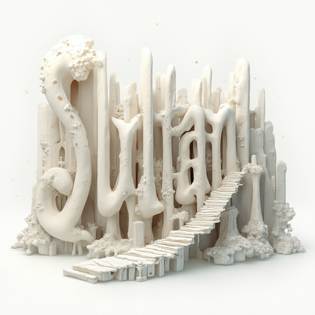 A surrealism-inspired tattoo idea where the name sultan becomes a floating, dreamlike landscape of impossible structures and soft colors.