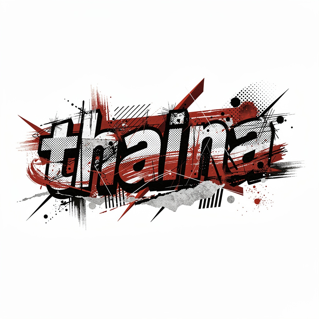 A surrealism-inspired tattoo design where the name Thaina twists into dreamlike, otherworldly letterforms.