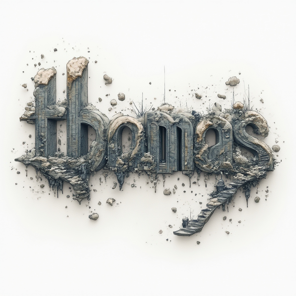 A surreal tattoo concept where "thomas" becomes a landscape of impossible architectural letters floating in a dreamlike space.