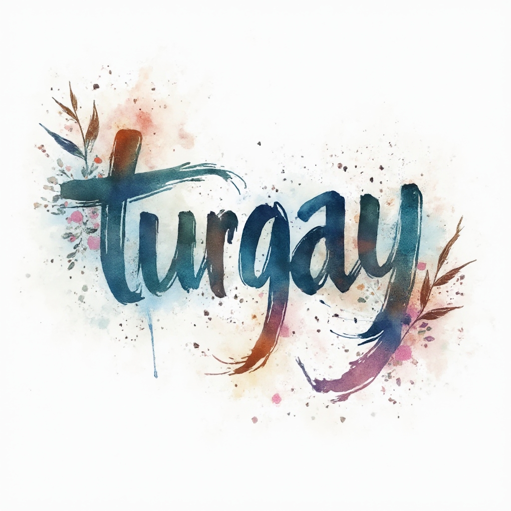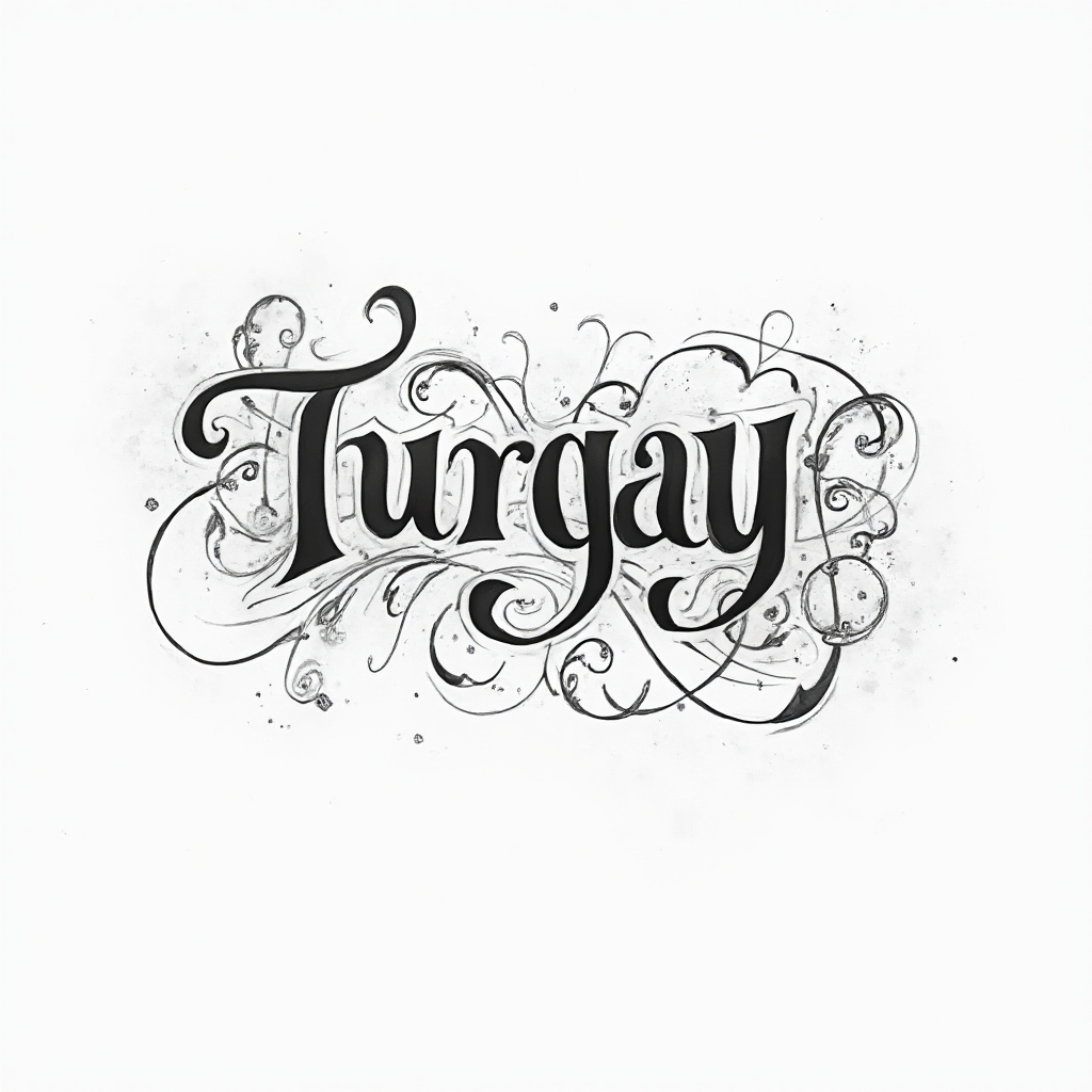 A vibrant watercolor-inspired design where “turgay” emerges from colorful splashes and gradients, perfect for expressive, painterly tattoos.