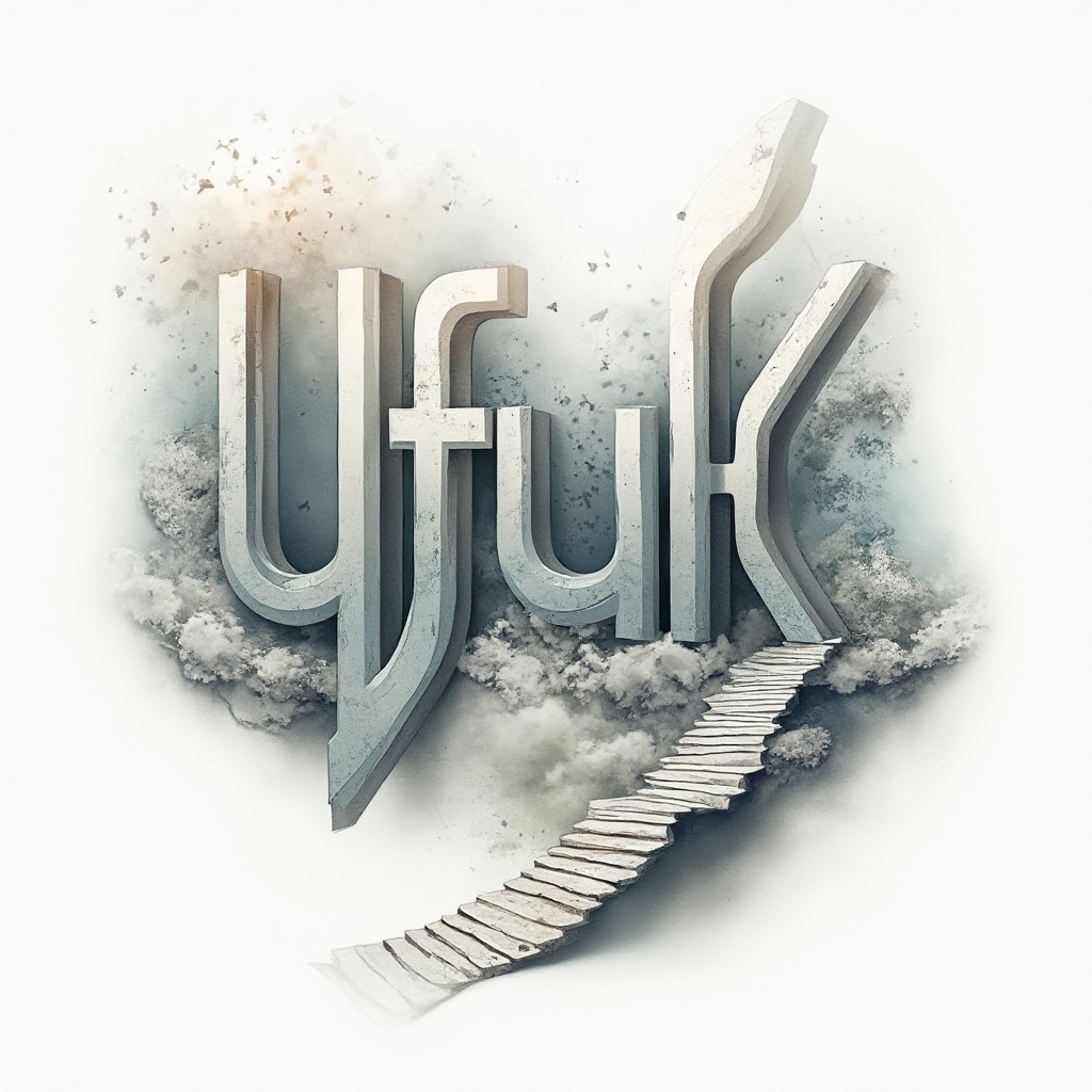 An abstract surreal composition where architectural, dreamlike shapes form the word 'ufuk'.