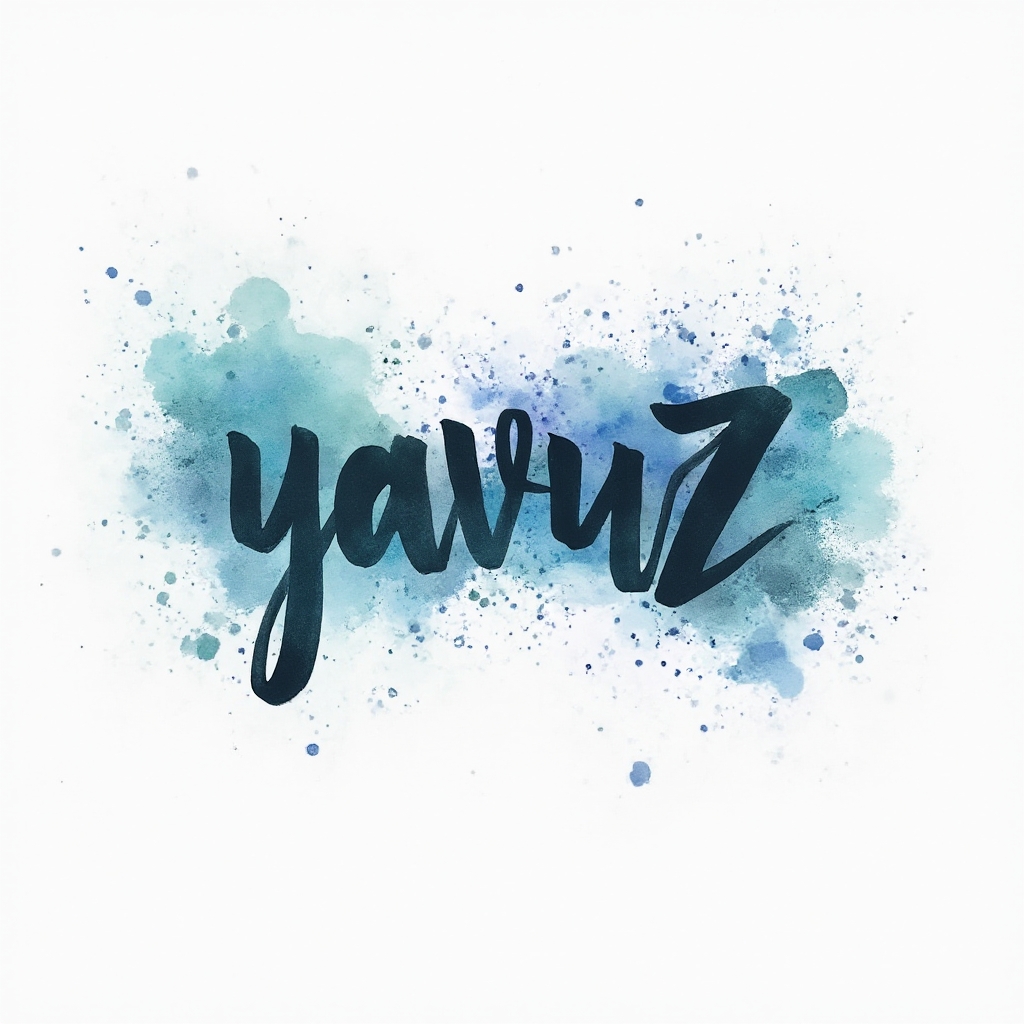 A vivid watercolor splash tattoo concept where the name 'yavuz' is formed by flowing, pigment-rich strokes and soft gradients on a clean white background.