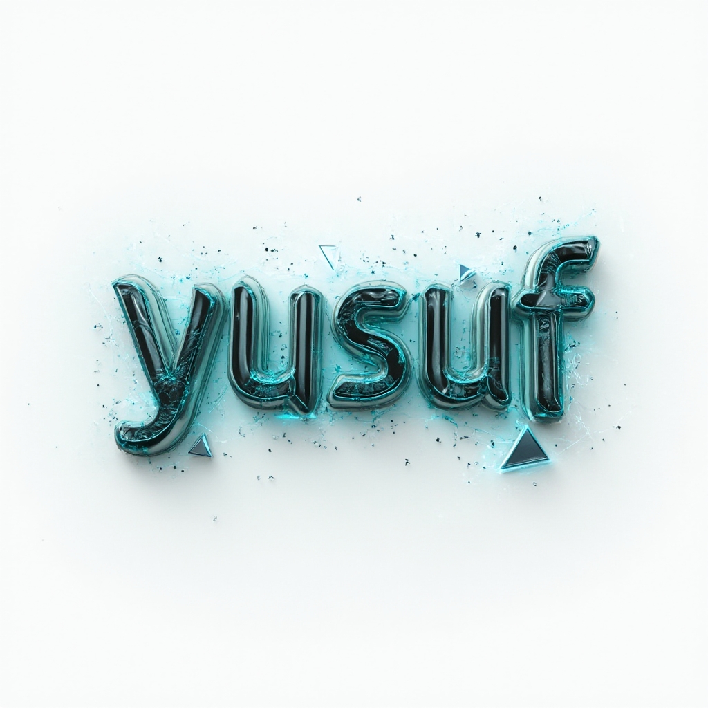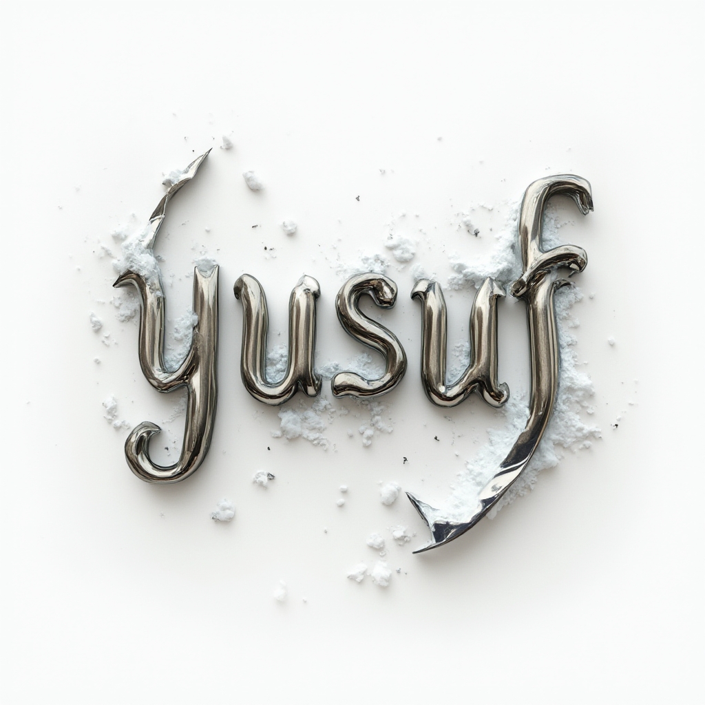 A surreal dreamscape in which the letters of ‘yusuf’ warp, melt, and fragment into impossible shapes floating in white space.
