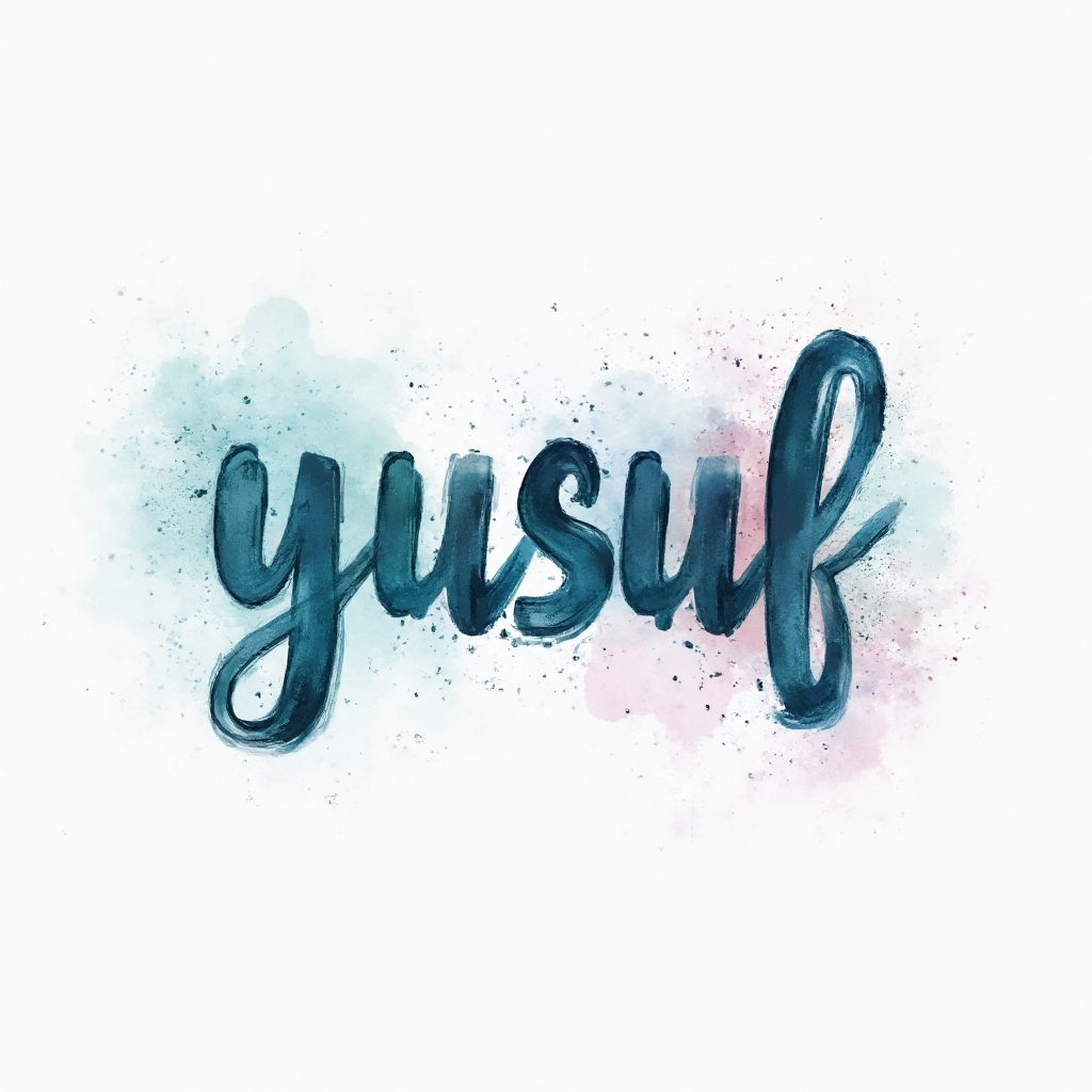 A vibrant watercolor-inspired design where ‘yusuf’ is composed of fluid, brushy letters made from overlapping splashes and gradients.
