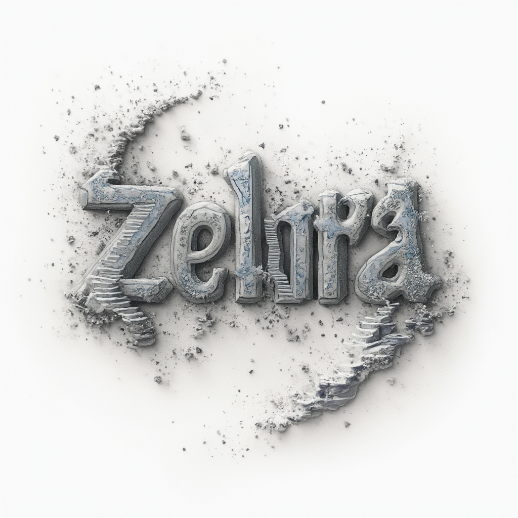 A surreal architectural lettering concept where the name zehra becomes a floating, impossible structure in a white void.